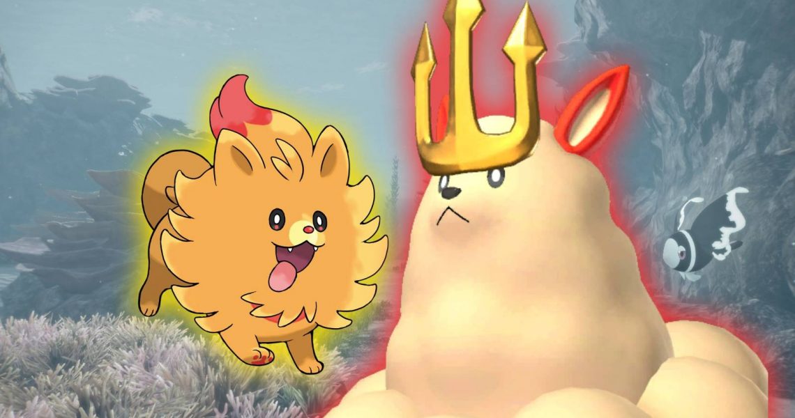 Pombon resembles a Pomeranian, with soft red accents and a fluffy body, giving it a warm, approachable look. Palworld‘s Flambelle has a bright orange and red coloration, a small body, and a cute, expressive face, all resembling Pombon in Pokemon Winds and Waves. On the other hand is Kingpaca, a larger, warm-toned quadruped with playful proportions, reflecting Pombon’s friendly and guileless aesthetic.
