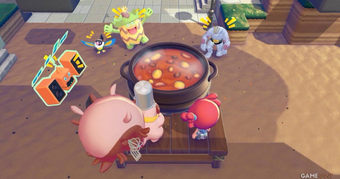 Now that the vibe is perfect, you can speak to Chef Dente and take them over to the cooking pot. You’ll also need to bring DJ Rotom, Ludicolo, and two other Pokemon to help with the cooking process. Of course, you’ll need to add the ingredients first: