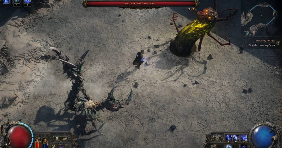 Anundr is a giant worm that’s more or less the same as The Devourer back in Act 1. It attacks by spitting projectiles and swinging its huge body around, and once its health drops low enough, its tail will start attacking you as well. Meanwhile, Akthi is a giant scorpion with wide attacks that can poison players.