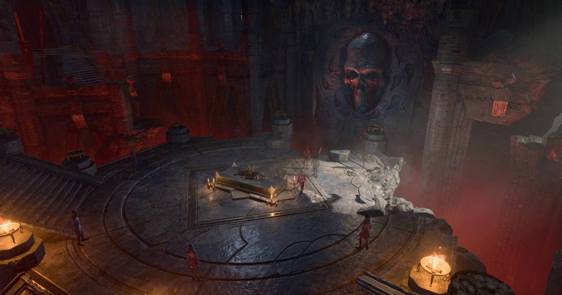 Players can feel free to tell the truth: since Bhaal is the God of Murder, killing the Tribunal still counts as an act of devotion. It’s also possible to shoot one of the hanging corpses above the ritual circle to spill some blood. This opens the door automatically and allows players to progress a bit inside the temple.