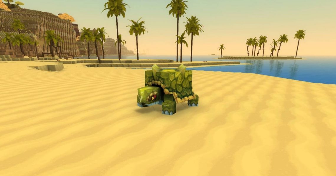 Tortoises can be found on the coastlines of the Howling Sands (Zone 2) region in Hytale, at the same location where you find Palm trees and sandy beaches. They are often hiding inside their shells and only appear as a block of green mass from afar. Tortoises are non-aggressive, meaning you do not have to worry about being attacked back when farming them for Sturdy Chitin.